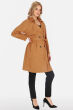 Prezentowany dwurzędowy brązowy trencz damski został uszyty z przyjemnego w dotyku materiału imitującego zamsz. Dodatek elastanu w składzie gwarantuje komfort noszenia. Płaszcz posiada luźny, prosty krój, można go regulować w talii dołączonym paskiem. Jest zapinany na guziki, posiada kieszenie, ozdobną patkę na piersi oraz klasyczny dekolt z klapami. Nie posiada podszewki.
