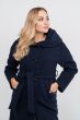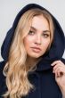 Granatowy płaszcz z wełny dziewiczej z kapturem oraz paskiem Lena